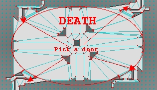 |  | ...a room which a Juggernaut, some pfhlicktor, and two scouts teleport into to have a big shoot out. Carefully end this fight then figure out the canal-like lock system. Hitting the switch will activate a series of events: 1. Lava filters IN to here. 2.This platform lowers to the ground. 3.This platform raises up (try to be ON or at least beyond this when this happens!). 4.Lava filters IN to here. Then you can swim up, get the life, through the hall on the south wall (killing pfhlicktor and such in the way) and into a big room... | ||