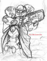 NOTES FROM IAN: This character was created completely with Strata Studio Pro. (A new toy of mine.) He has a cold rendered look to him...A look I try to stay away from really...But he looks cool none the less.