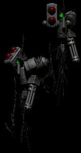 FOUND MOSTLY IN MILITARY ZONES, THESE MONSTERS HOVER AROUND TOATING A GATTLING GUN AND A RIPPLE RACK FULL OF MISSILES. SINCE THESE THINGS CAN ASSEMBLE EVEN THE MOST COMPLICATED MACHINES OUT OF NOTHING THE AMMO TO THEIR GUNS NEVER ENDS.