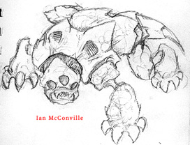 NOTES FROM IAN: THIS GUY WAS MY FIRST 3D RENDERED MODEL OF THE GAME. HE WAS ORIGINALY HAND DRAWN IN BUT THAT PROVED ANNOYING. SO NOW IT HAS BEEN RENDERED IN AND THEN TOUCHED UP USING PHOTO SHOP TO GIVE IT A MORE ORGANIC LOOK.